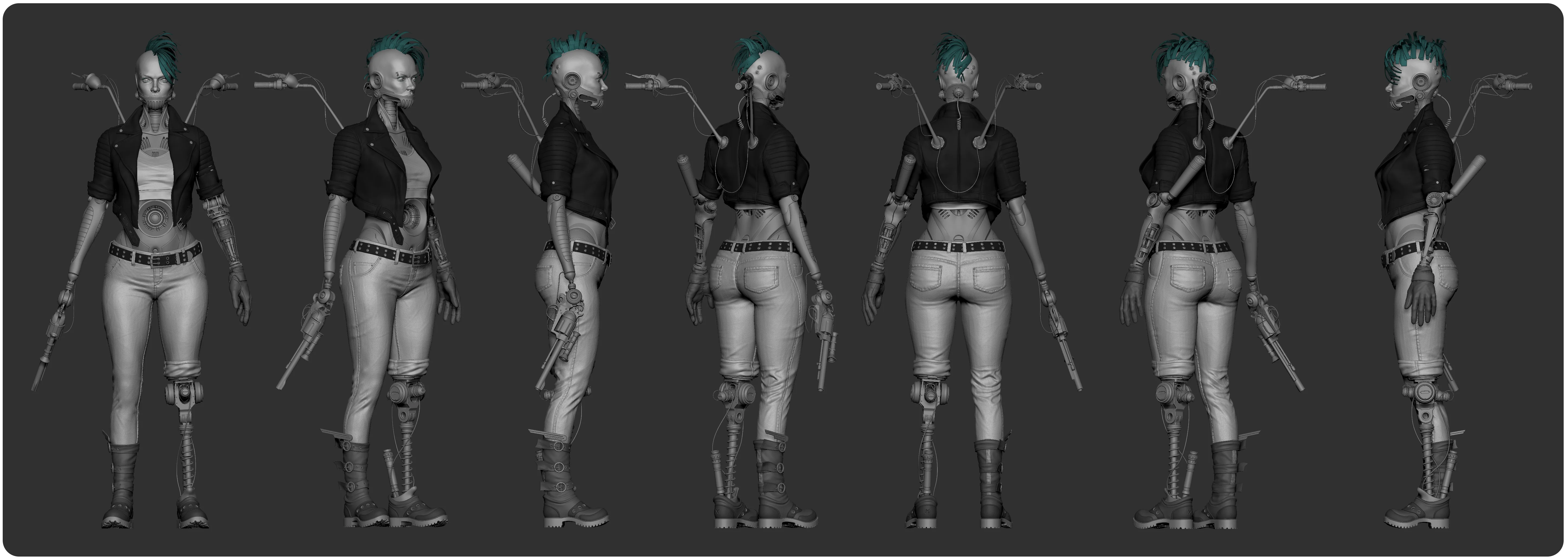 This concept was inspired by the Madcats comics my instructor used to read, which featured a character named Ladytron — a cyborg femme fatale. Combining both organic and hard-surface modeling, this project was a joy to work on. Although it was put on hold after I was hired straight out of school, I’m excited to return to it and finally bring this concept to life.