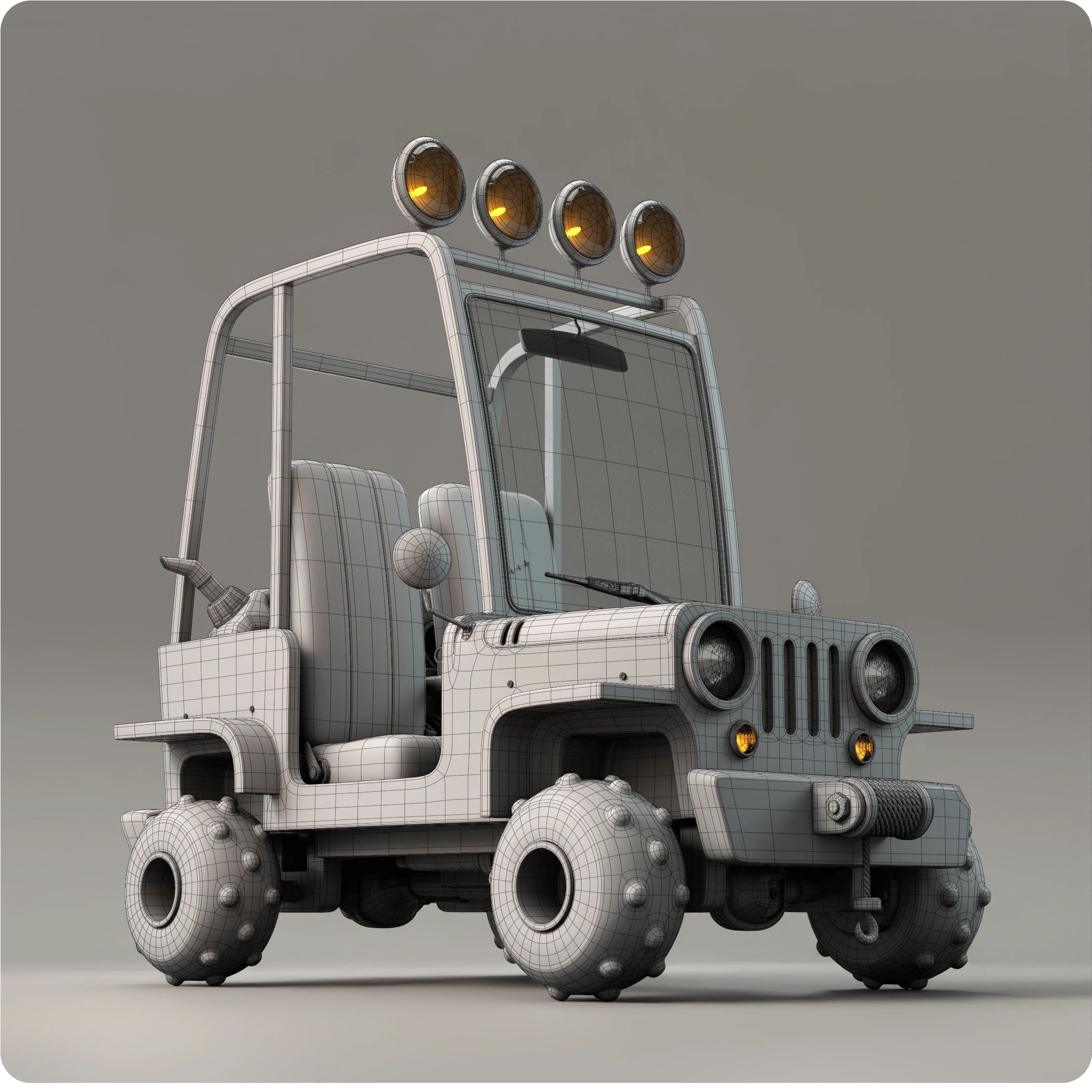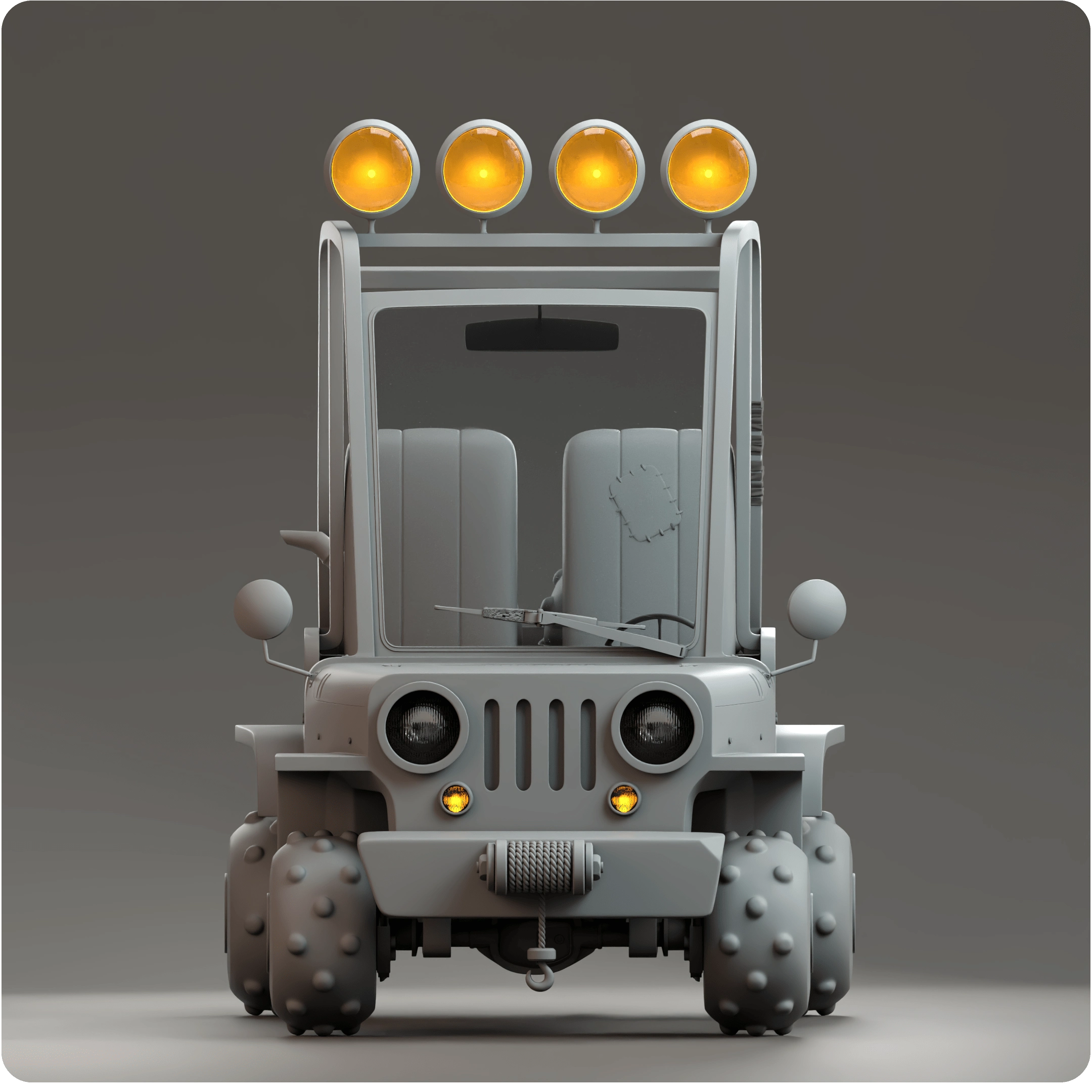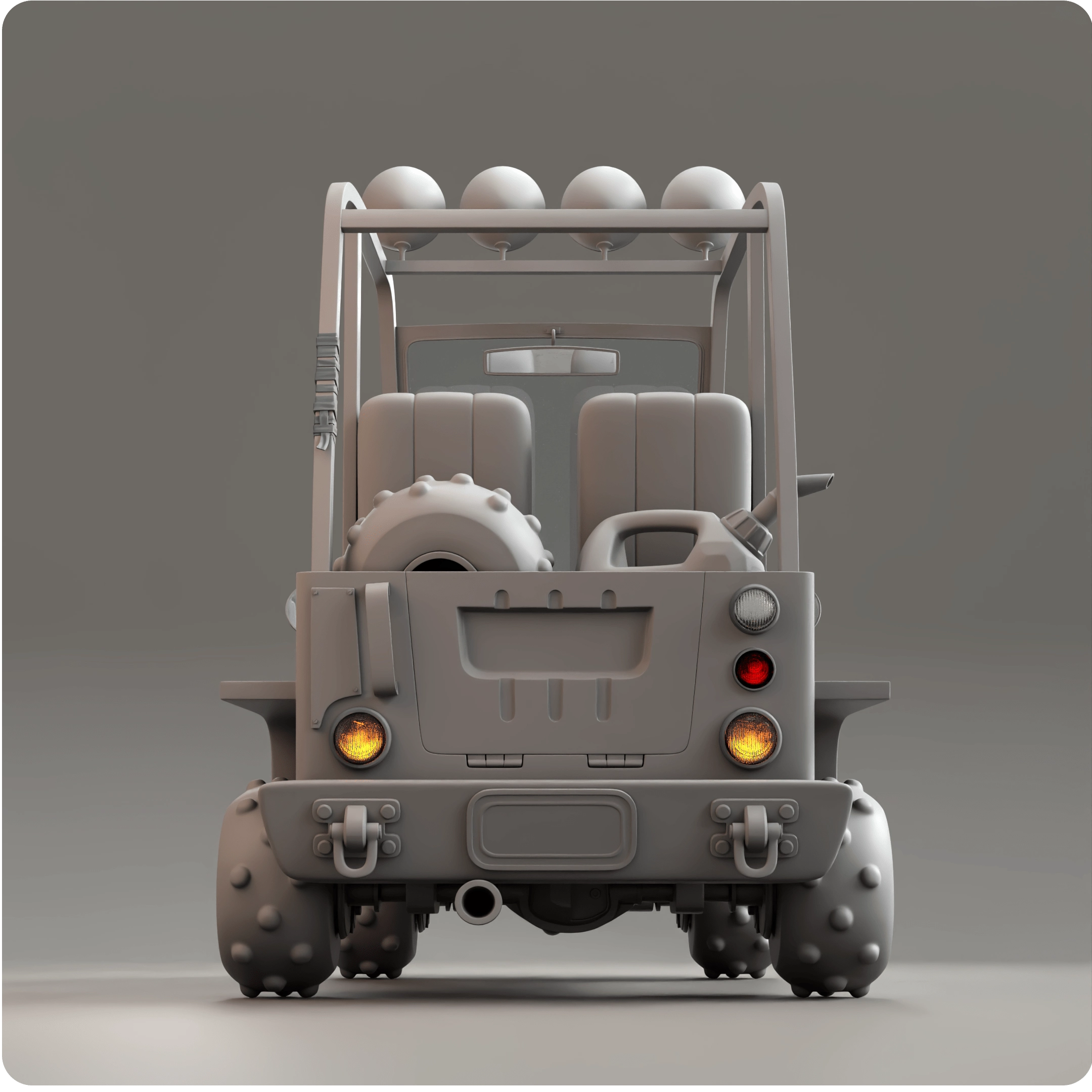 While I aimed to preserve the playful and stylized aesthetic of the original vehicle, I redirected the squash-and-stretch approach to more targeted areas—such as the windshield, and truck frame—to retain character without compromising structural believability. This allowed me to maintain the charm of the source material while giving it a more refined and deliberate visual presence.