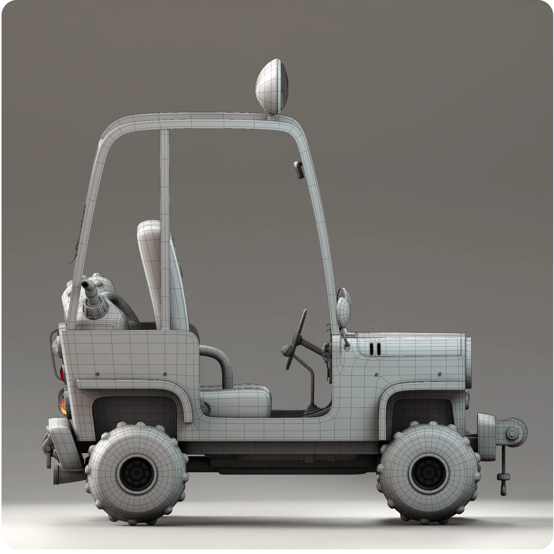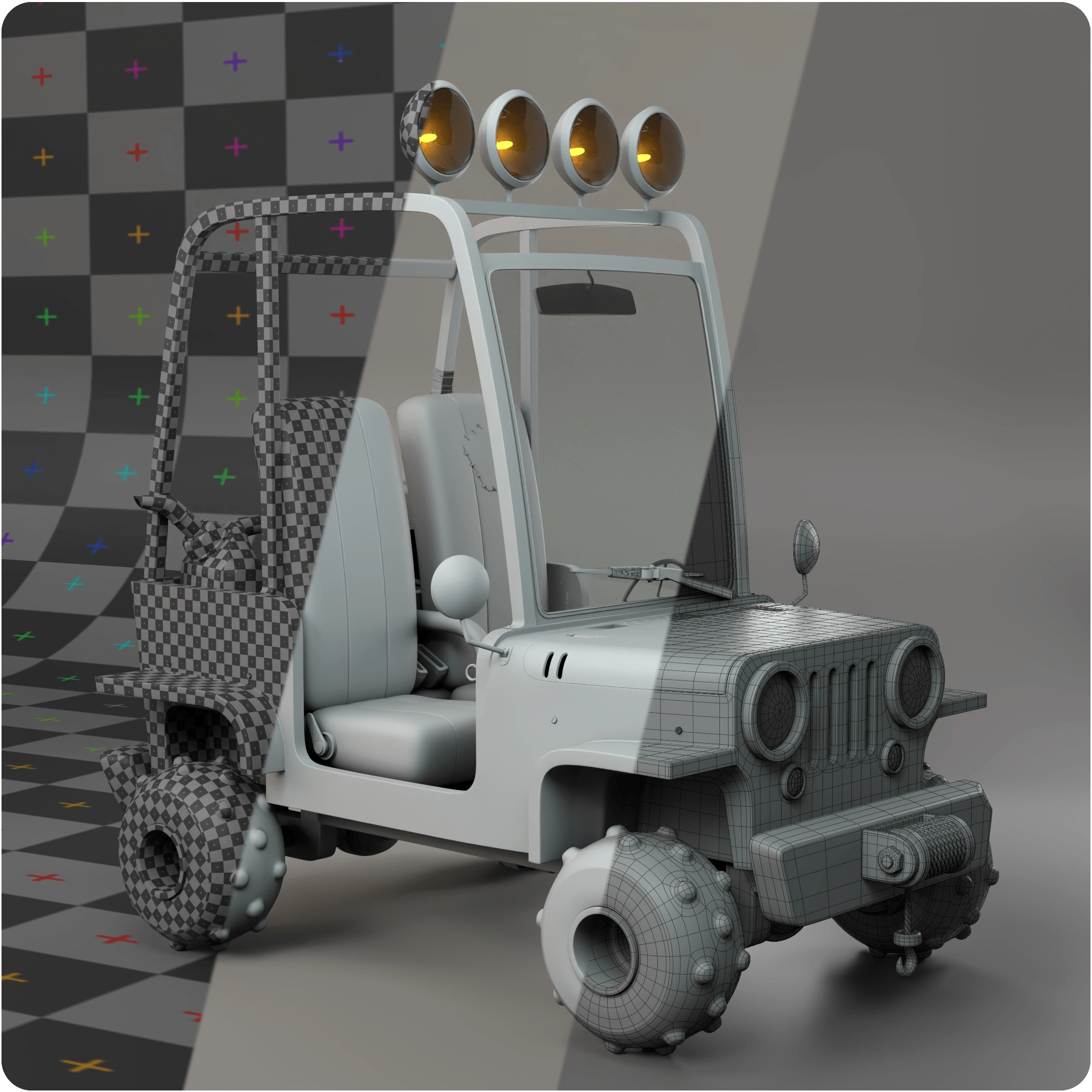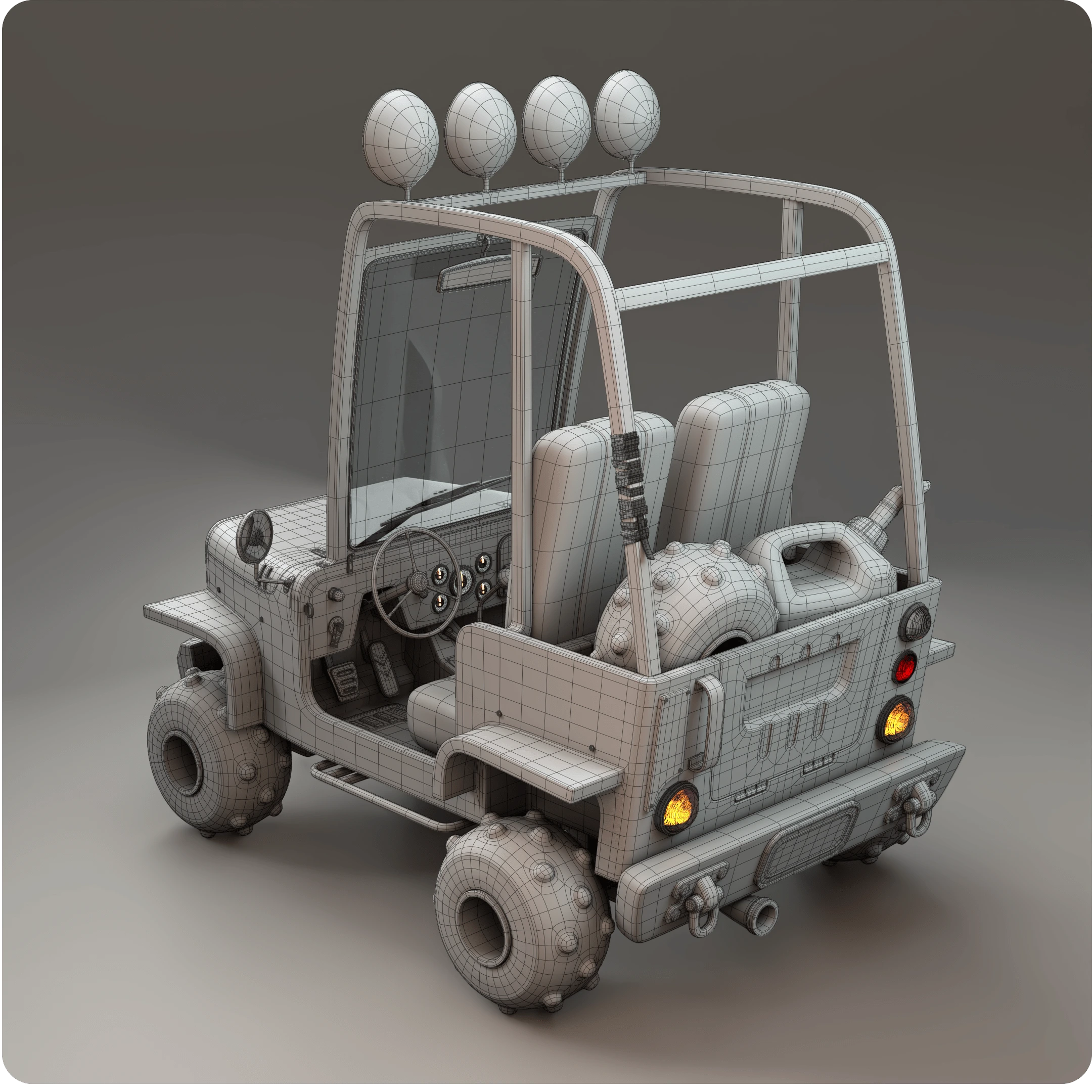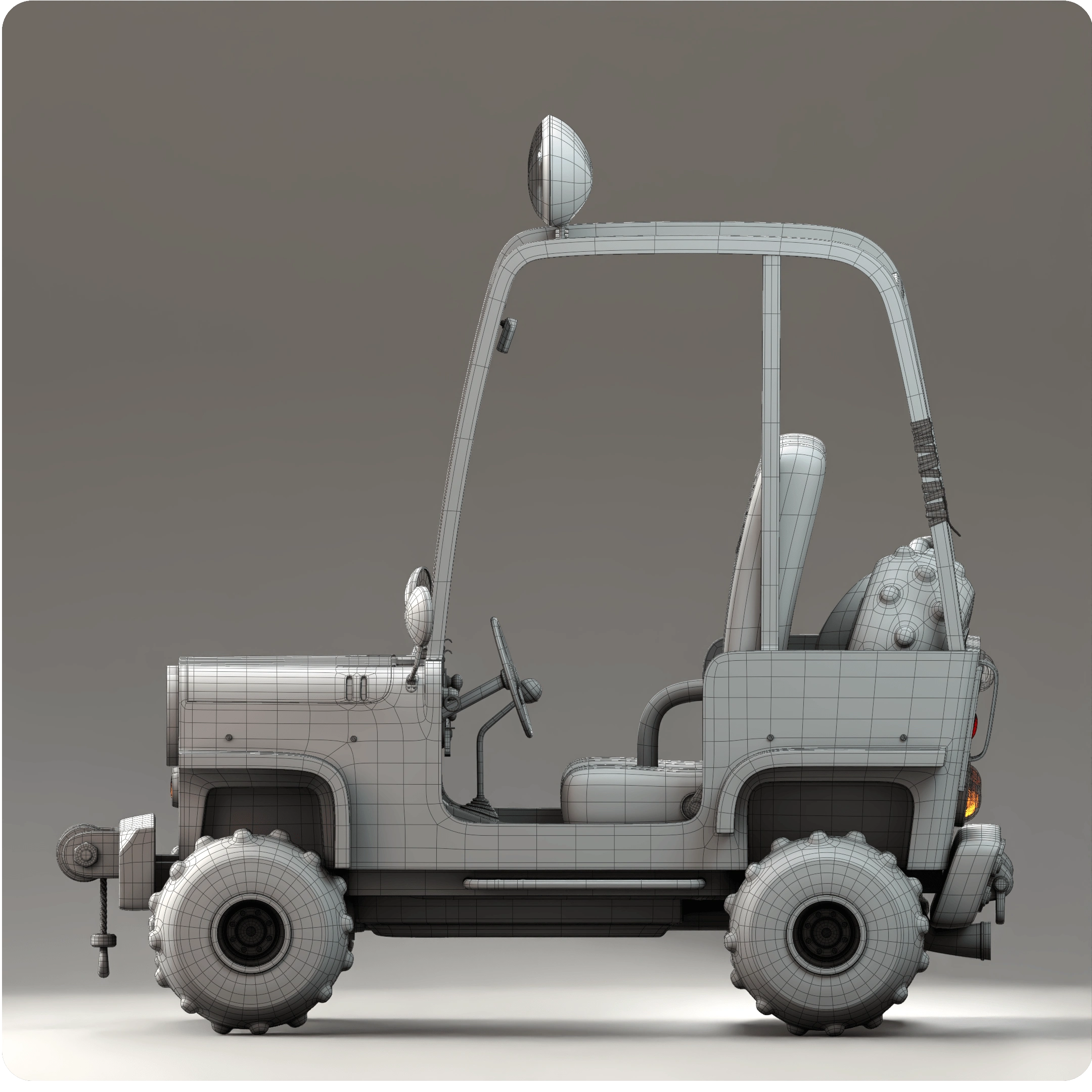 While I aimed to preserve the playful and stylized aesthetic of the original vehicle, I redirected the squash-and-stretch approach to more targeted areas—such as the windshield, and truck frame—to retain character without compromising structural believability. This allowed me to maintain the charm of the source material while giving it a more refined and deliberate visual presence.