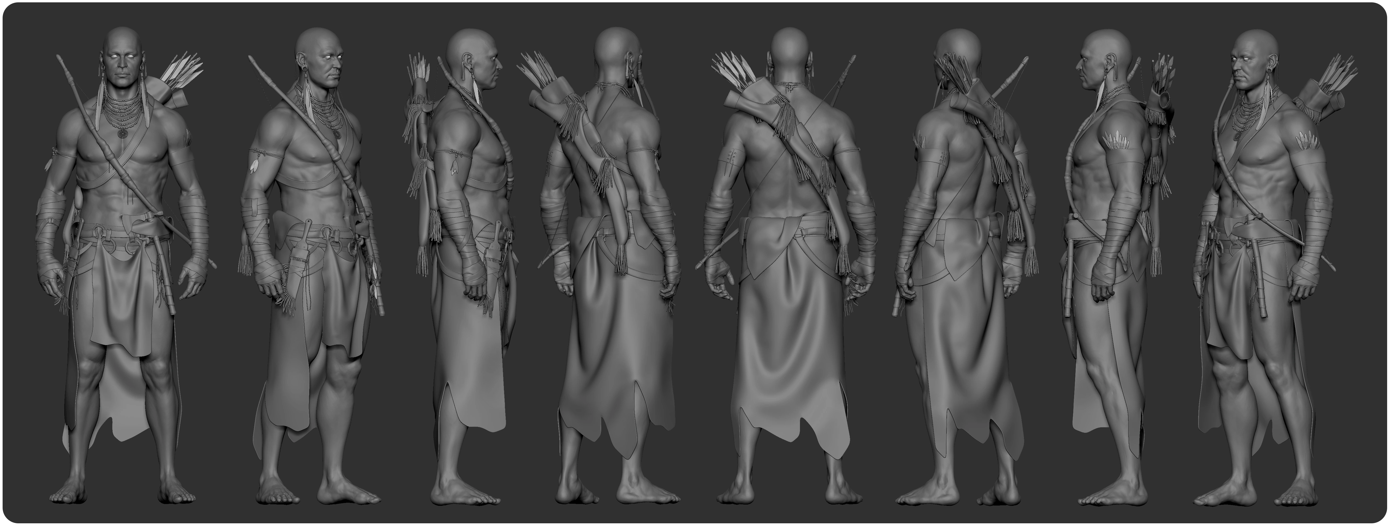 This was the first character I ever attempted, and I remember struggling quite a bit with anatomy — but it turned out to be the best way to learn. I chose the concept of a Native Indian warrior; partially because the design wasn’t overly detailed, it left plenty of room for creative interpretation as a 3D modeler.